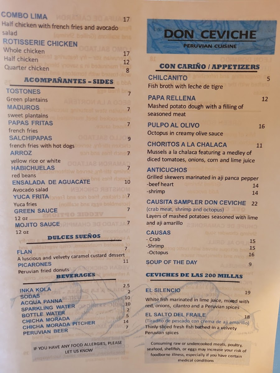 With friendly service and an emphasis on fresh ingredients, Don Ceviche promises a satisfying and memorable dining experience. Patrons gush over the quality and richness of flavors, making it a favorite destination for lovers of Peruvian cuisine.